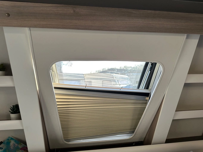 Roleta w przednim oknie (zaciemnienie ok, moskitiera wisi)