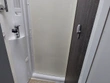 Niewielkie wgniecenie w drzwiach garażu rowerowego po prawej stronie