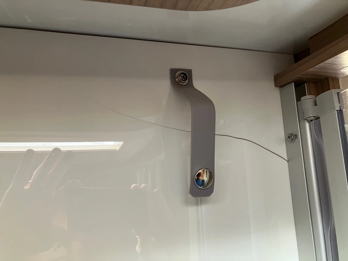 Pęknięcie w ścianie prysznica w prawym górnym rogu (brak utrudnień podczas brania prysznica)
